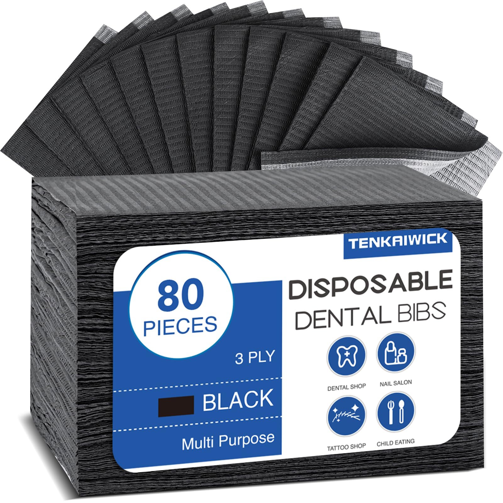 80 Pack Disposable Dental Bibs 13"x18",3-Ply Waterproof Tattoo Bibs Sheet for Nail Salon,Dental Clinic,Feeding,Tattoo Shop (Black)