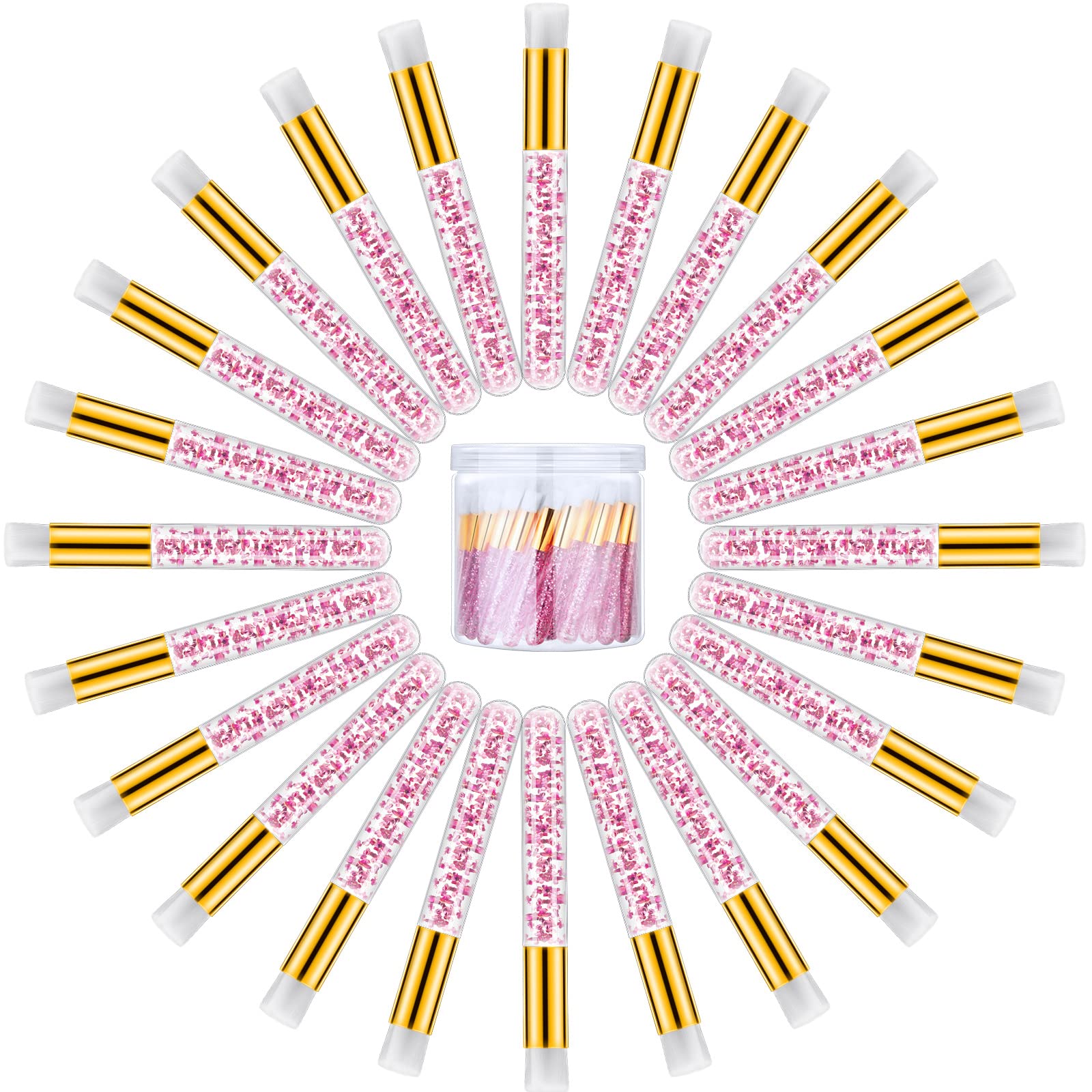 80 Pcs Lash Shampoo Brushes with Container Pink Eyelash Cleaning Brush Bulk Glitter Eyelash Extension Cleansing Brush Crystal Facial Eyelash Brush Cosmetic Lash Shampoo Brush Blackhead Removing Brush