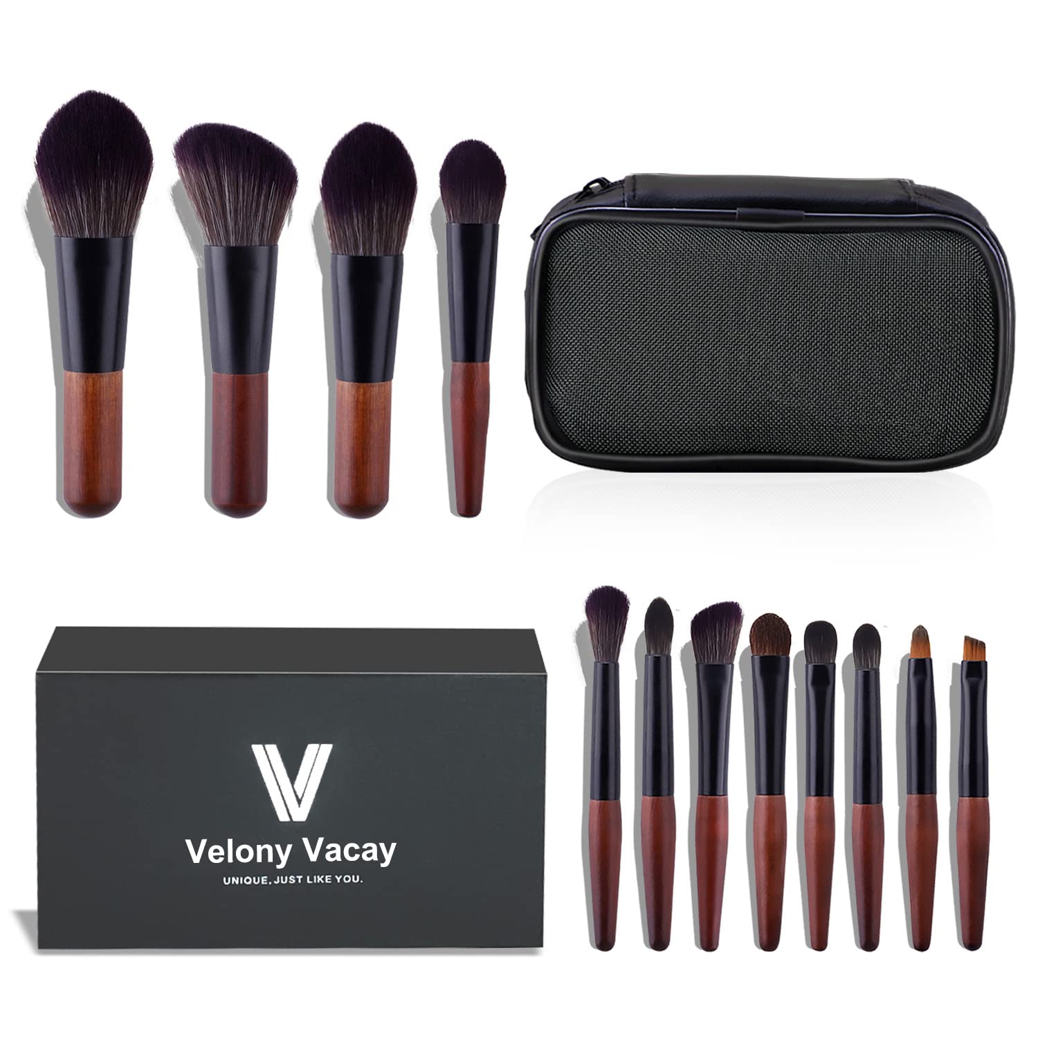 Velony Vacay Makeup Brushes Set, 12Pcs Travel Makeup Brush Set Premium Synthetic Eyeshadow, Contour, Blush, Concealer, Blending, Full Face Mini Makeup Brush Set With Case