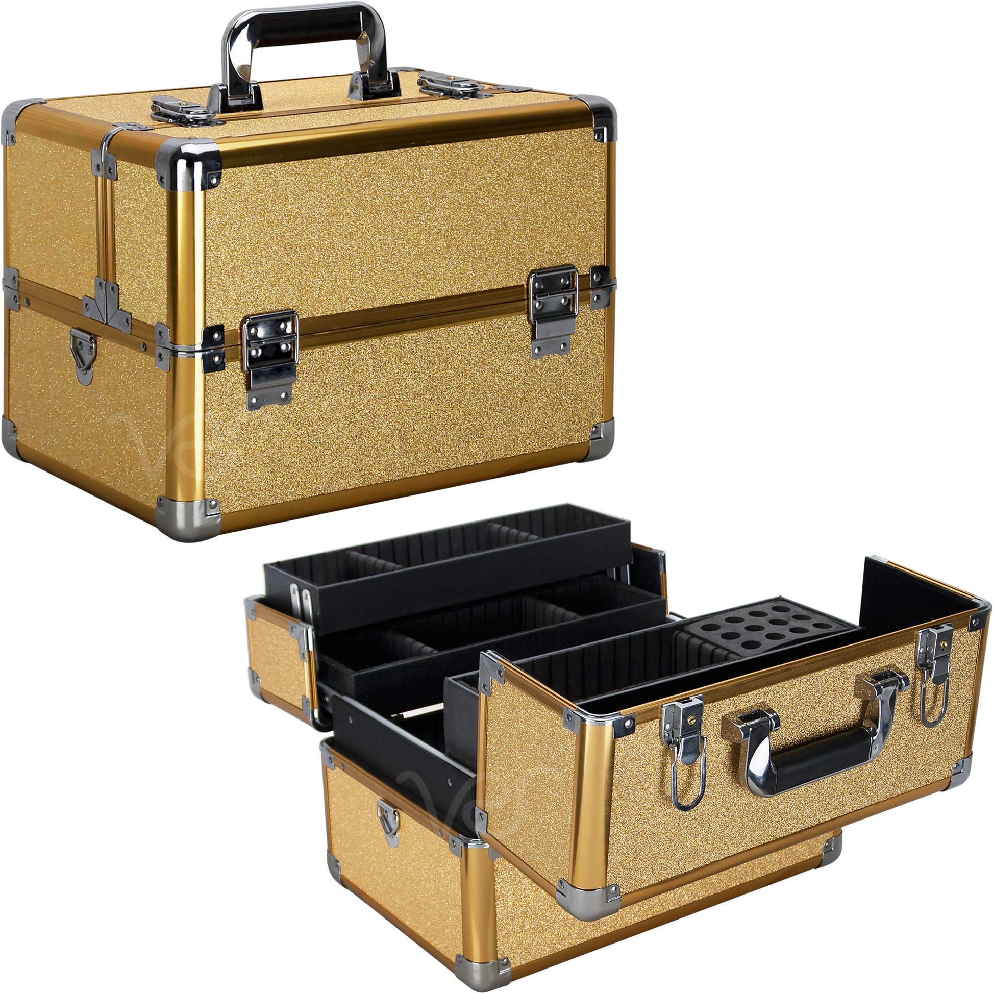 Ver Beauty beauty 3 easy slide extendable trays professional cosmetic makeup train case organizer travel dividers Gold Glitter Vk003-57