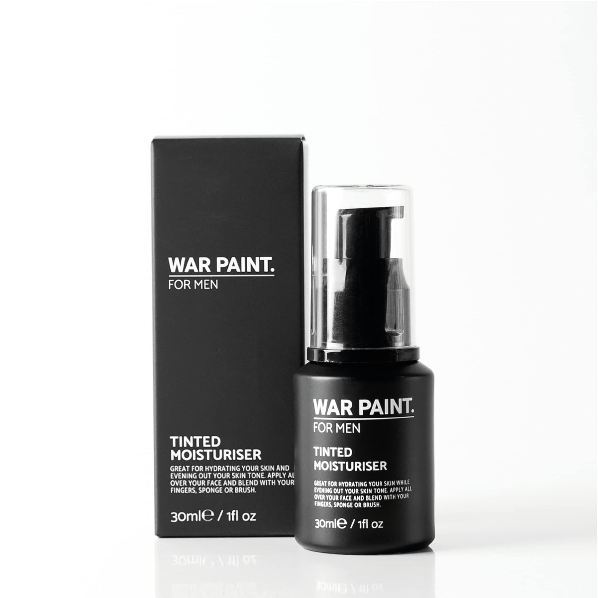 - HOW TO USE - Using your fingers gently massage the Tinted Moisturizer evenly all over your face and down your neck. You can also use a slightly damp Face Sponge to help blend the product into your skin. Our Tinted Moisturizer can be used on its own, or you can continue your makeup routine with our War Paint For Men Concealer for that extra perfect look!